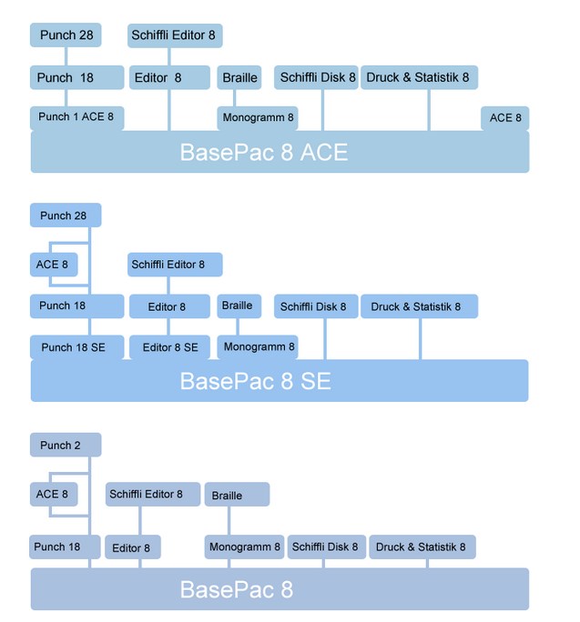 BasePac 8 SE and BasePac 8 ACE are complete packages, made for beginners, which do not only have the base package, but also an optimized selection of options, coordinated for different needs. And also the complete packages are extendable to the different capabilities of the options of the