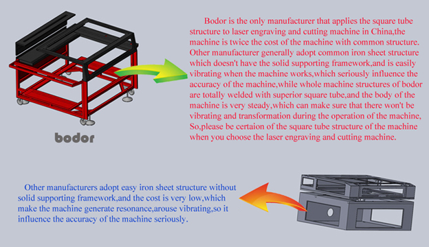 Taiwan square rail, square tube framework machine body, new high efficiency laser tube, red light positioning, advanced DSP control system, ensure high speed, high precision operation, and high work efficiency!